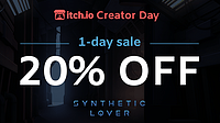 Hi everyone! Synthetic Lover is now on sale for 1 day to celebrate the itch.io Creator Day, with the platform forgoing taking the cut on game sales. If you've been waiting for a sale this is time to s...